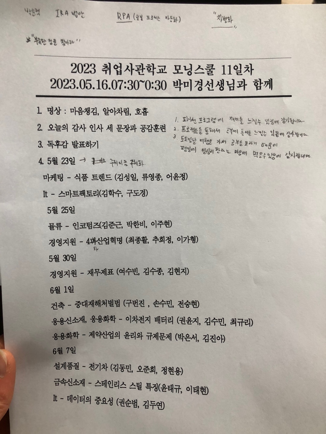 [모닝스쿨] 11일차(23.5.16) - "부족한 점을 찾아라" 본문
