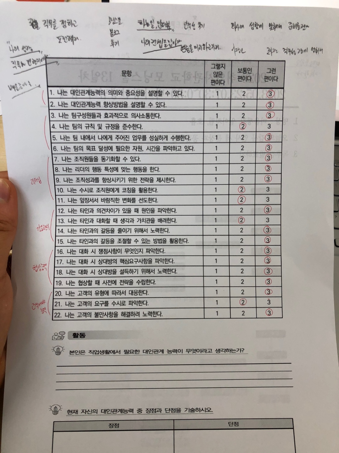 대인관계능력을 간단한 테스트를 통해서 파악해보았다.