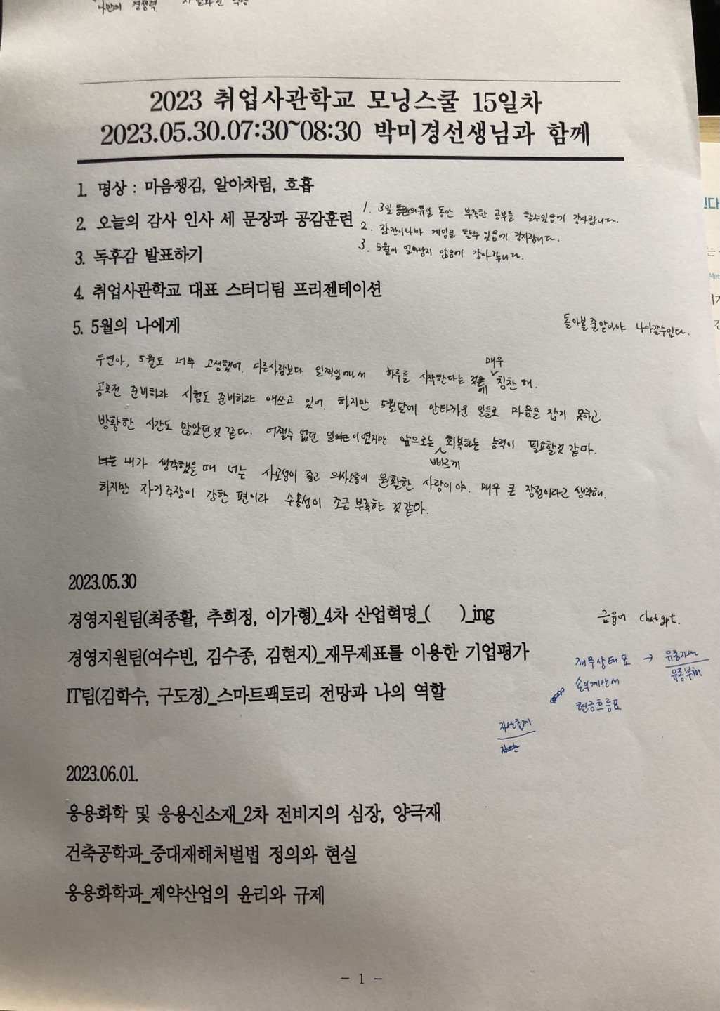 [모닝스쿨] 15일차(23.5.30) - "돌아볼 줄 알아야 나아갈 수 있다." 본문