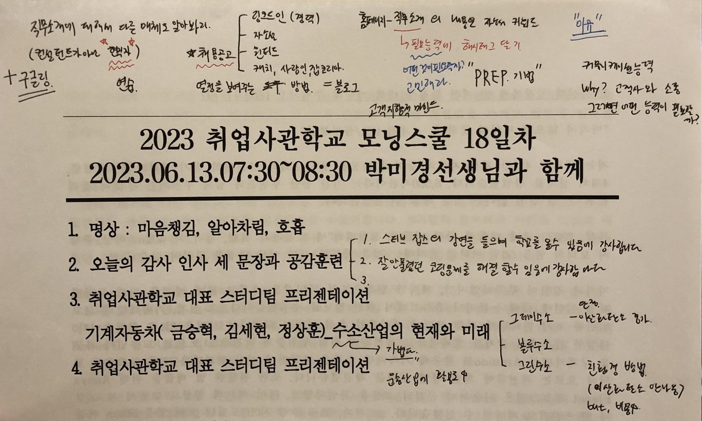[모닝스쿨] 18일차(23.06.13) - "앞으로의 인생에 변화를 줄 수 있는 점(dot)" 본문