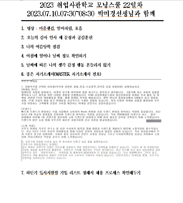오늘도 박미경 선생님과 모닝스쿨을 하면서 좋은 정보를 알 수 있게 되었다.