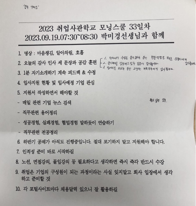 [모닝스쿨] 33일차(2023.09.19) - "직무 이해도가 중요하다" 본문