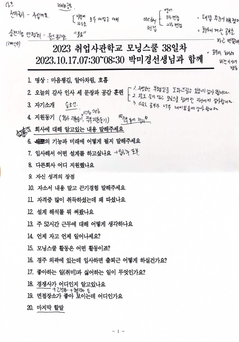 [모닝스쿨] 38일차(2023.10.17_07:30~08:30)_박미경 선생님과 함께 본문