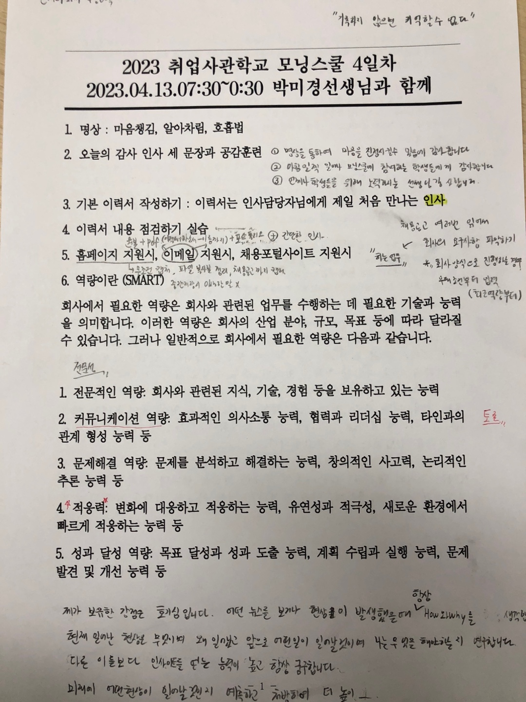 | [취업사관학교] 모닝스쿨-2일차(23.04.06)- "꾸준히 궁구하라" (0) | 2023.04.06 |