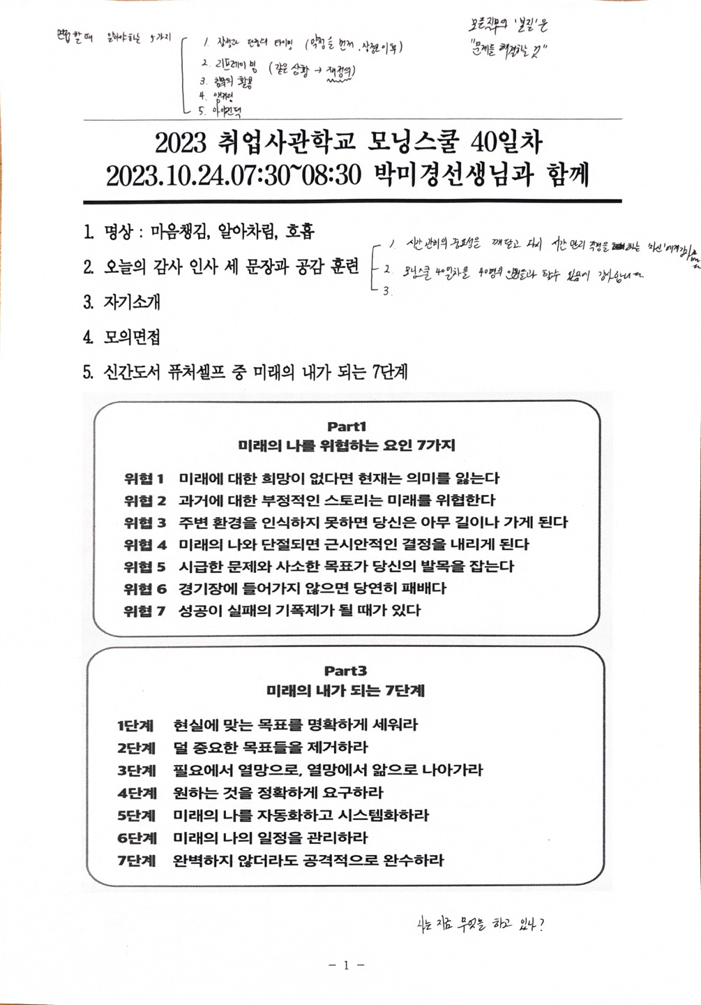 [모닝스쿨] 40일차(2023.10.24_07:30~08:30)_박미경 선생님과 함께 본문