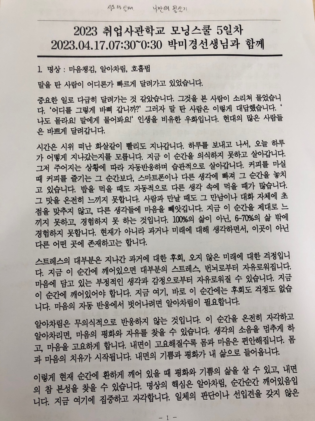 평소에는 명상을 할 때 잡 생각이 없었지만 오늘은 유난히 많은 생각들이 머리에서 맴돌았다.
