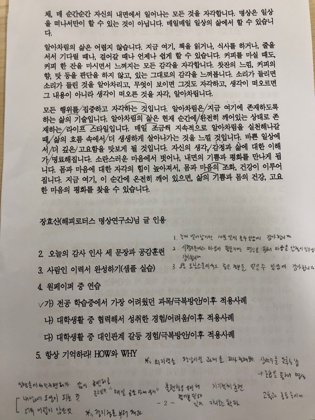 2. 시험기간이라 마음이 조급하지만 명상을 통해 마음을 안정시킬 수 있음에 감사합니다.