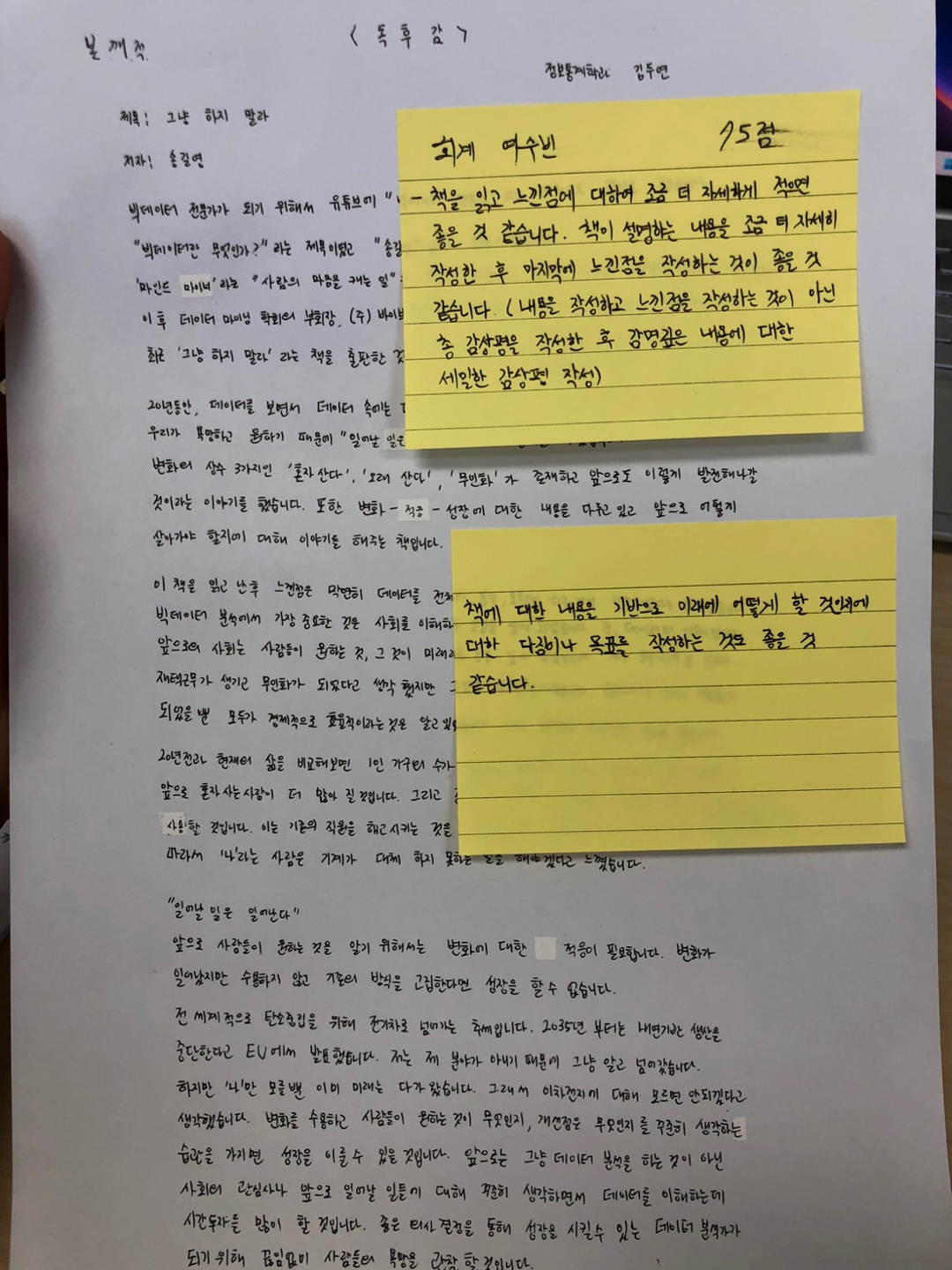 내 독후감은 75점이였다.