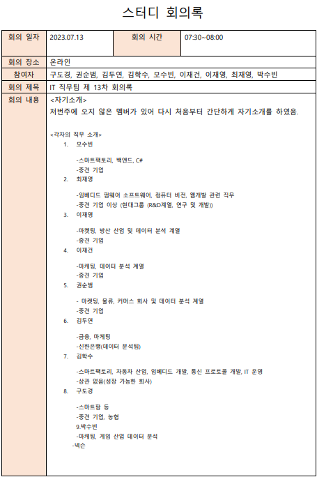 직무 스터디의 목적을 마음에 새기게 되었다.