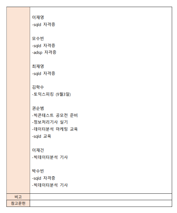 그리고 앞으로 8,9월에 진행하는 프로젝트 밑 자격증에 대해서 이야기를 했다.