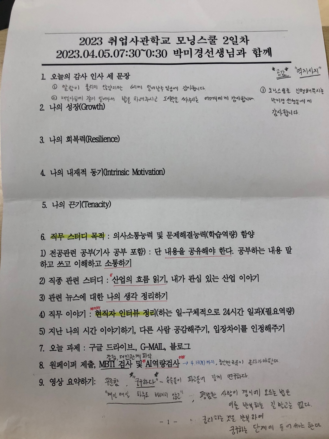 [취업사관학교] 모닝스쿨-2일차(23.04.06)- "꾸준히 궁구하라" 본문