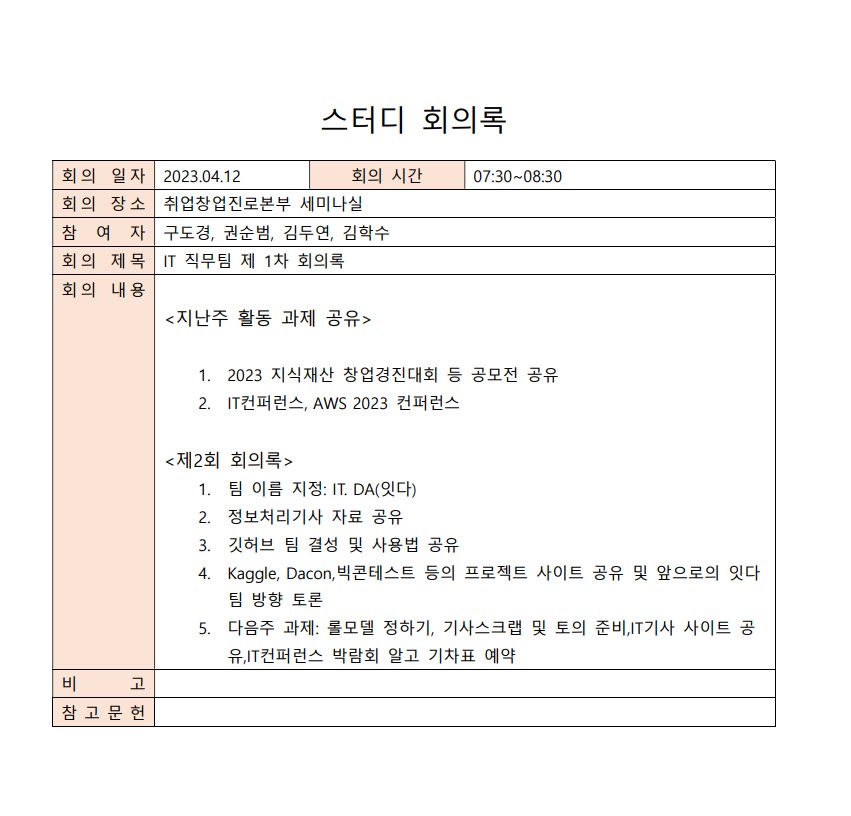 IT계열을 희망하는 2명과 Data Analyst를 희망하는 2명이 함께 어울려 잘해보자는 의미에서 잇다(ITDA)로 결정하였다.