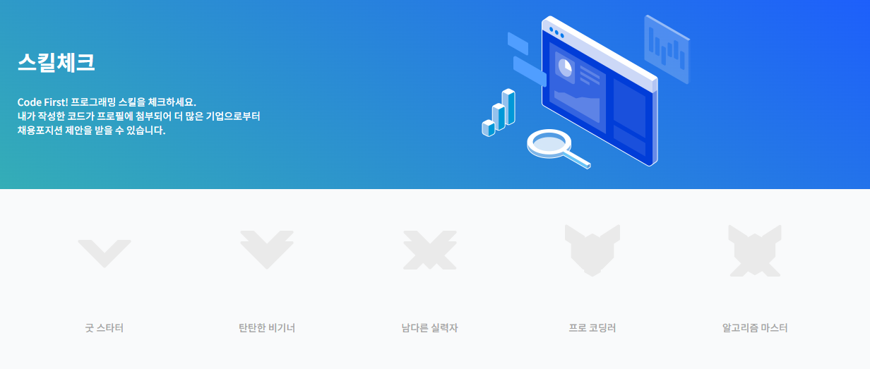 그 과정에서 프로그래머스의 스킬체크를 통해서 코딩실력을 확인하여 특정 수준까지 도달할 것