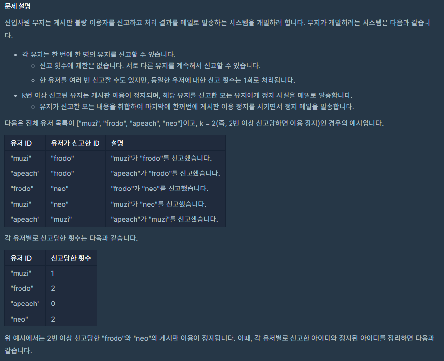 2. 신고 횟수를 누적하는 방을 딕셔너리를 만들자 => report_all