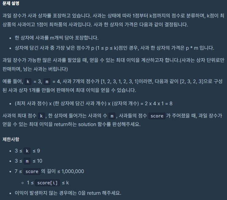 [프로그래머스Lv.1] 과일 장수 - 파이썬 본문
