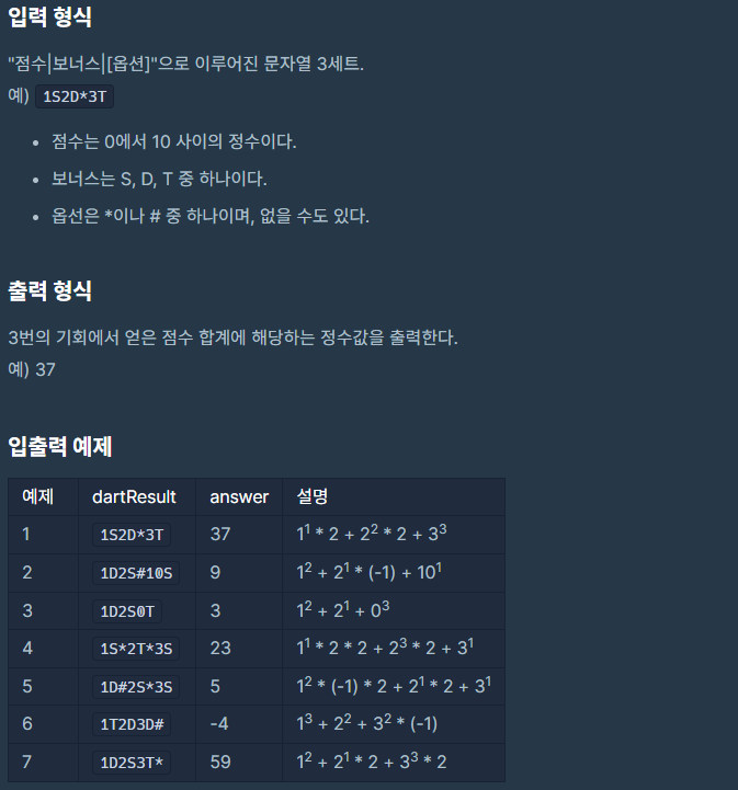 [프로그래머스Lv.1] 다트 게임 - 파이썬 본문
