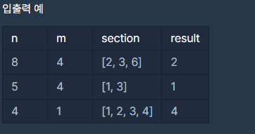 1. section에서 처음 덧칠 할 구간에서부터 m만큼 덧칠을 한다. 그리고 answer에 1을 더해준다