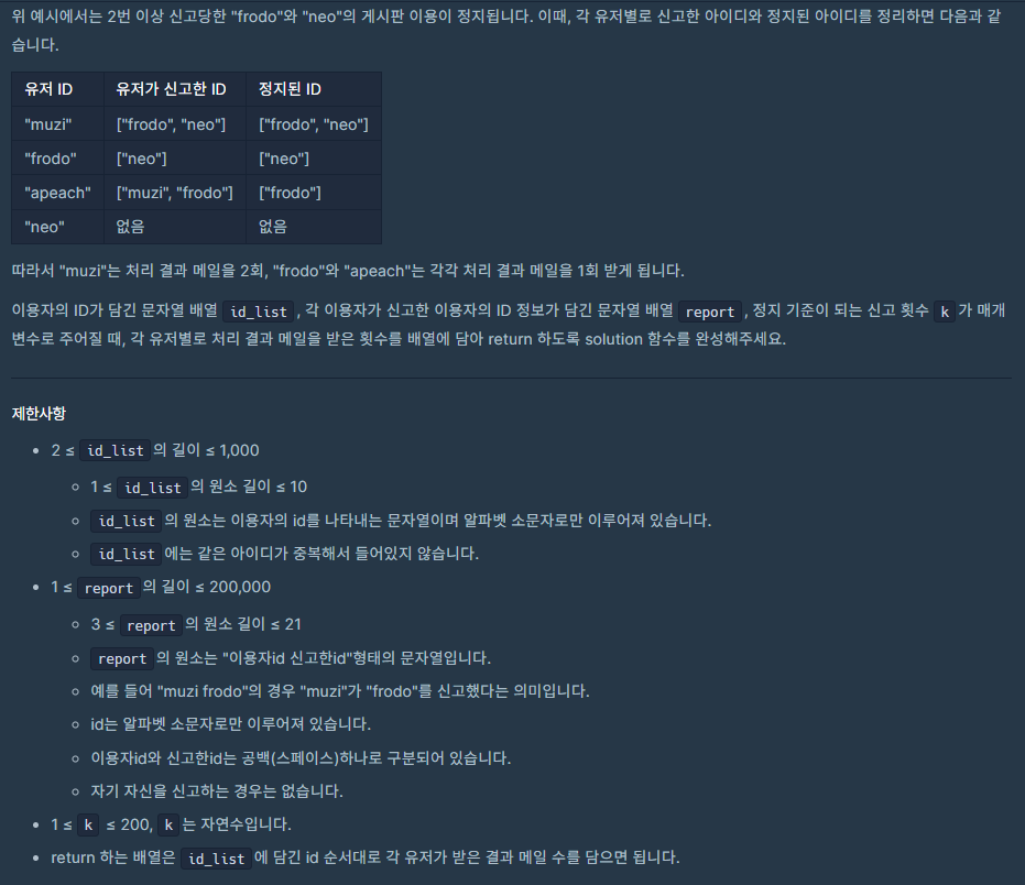 3. report에 중복되는 값을 제거하자 => set(report)