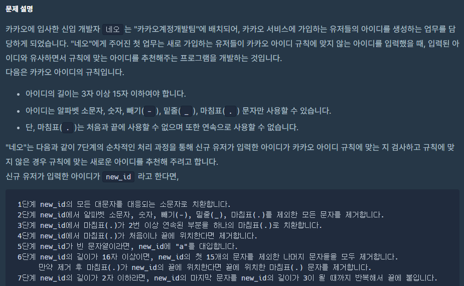 [프로그래머스Lv.1] 신규 아이디 추천 - 파이썬 본문