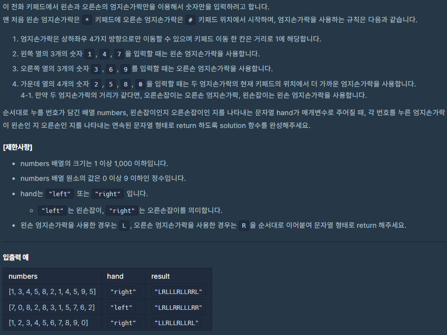 [프로그래머스Lv1] 키패드 누르기(파이썬) 본문