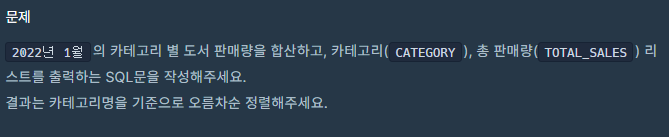 [프로그래머스_SQL] Lv3_카테고리 별 도서 판매량 집계하기 본문