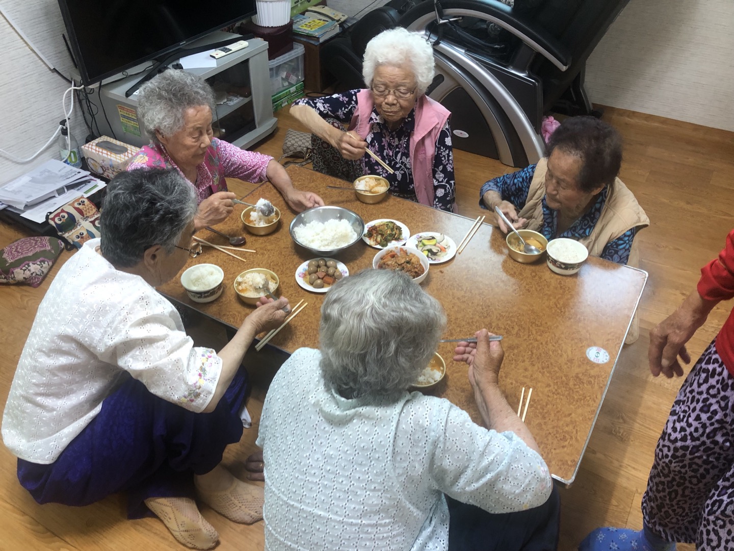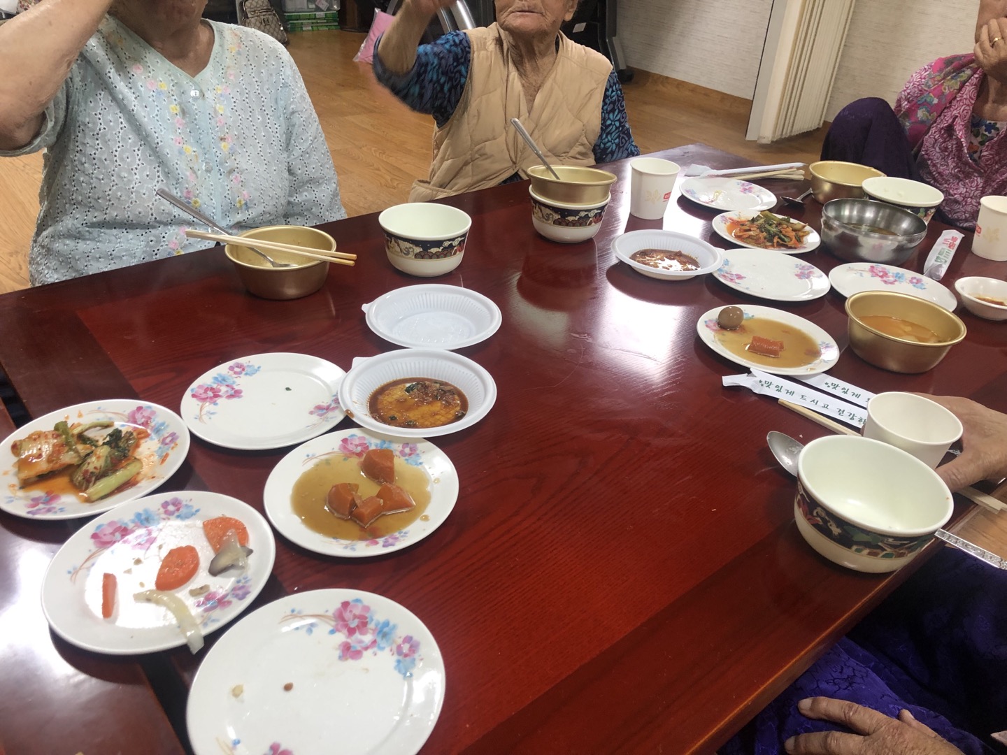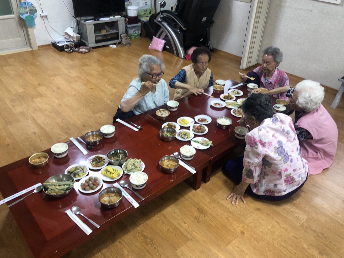 보통 저는 상을 차리고 반찬을 접시에 옮겨담고, 수저를 세팅하고 식사를 거의 다 하실때 쯤 물을 가져다 드리고, 상을 치웅고 정리정돈 까지 하고 있습니다. 항상 뿌듯함을 느끼고 할머니들과 동네 어르신들에게 제가 도움을 드릴 수 있다는 것에 감사하다는 마음으로 임하고 있습니다.