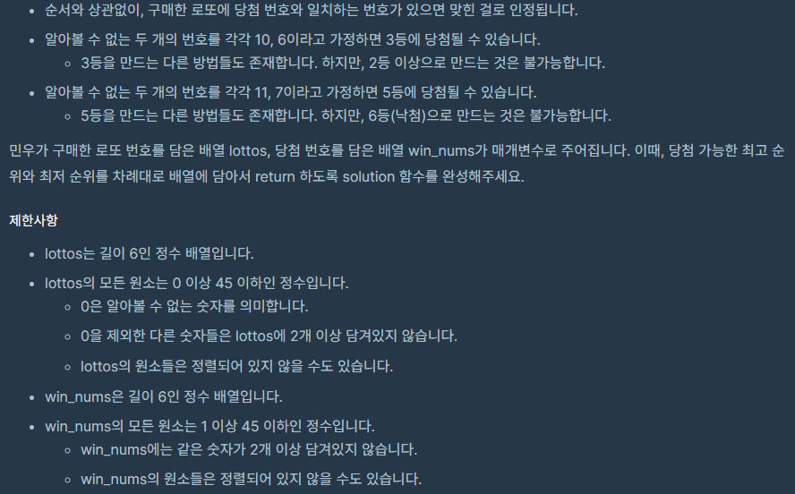 문제2. 로또의 최고 순위와 최저 순위
