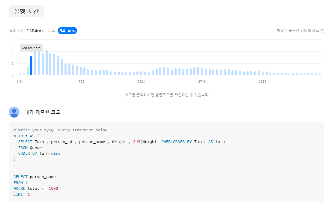 밑에서의 나의 코드의 실행시간을 살펴보면 상위 5%인 것을 확인할 수 있다.