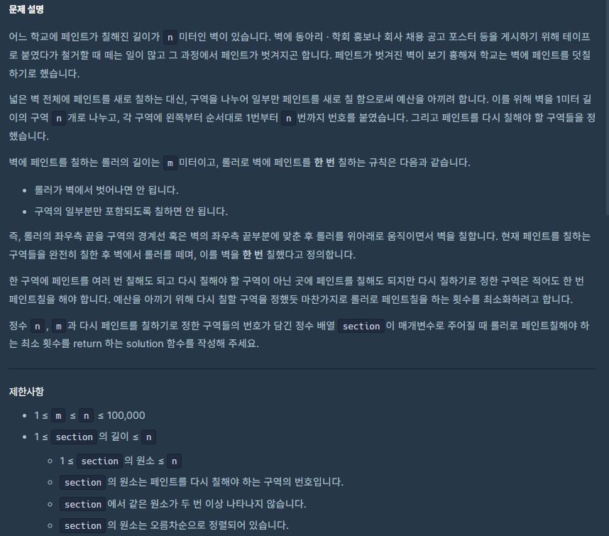 def solution(n, m, section):