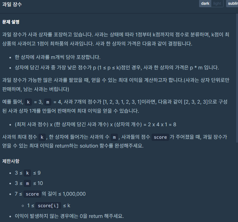 [Coding Club] 23.07.21(프로그래머스-과일 장수) 본문