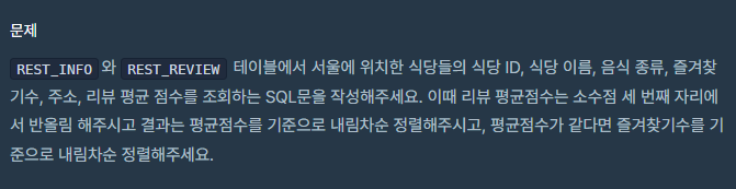 문제 : Lv.4 - 서울에 위치한 식당 목록 출력하기