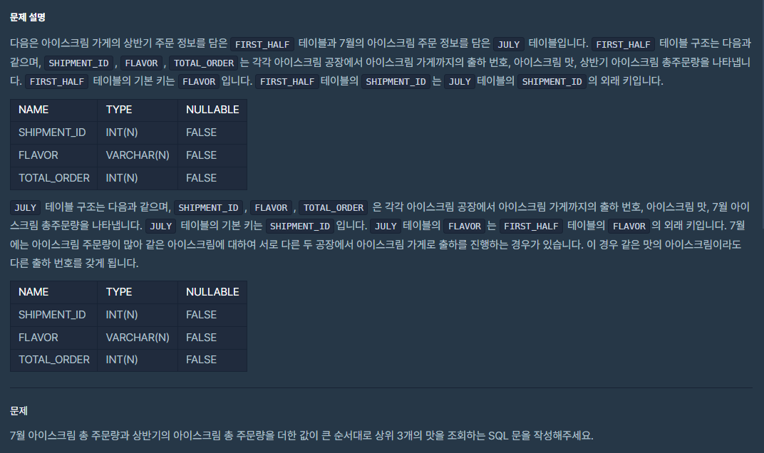 문제 : 주문량이 많은 아이스크림들 조회하기