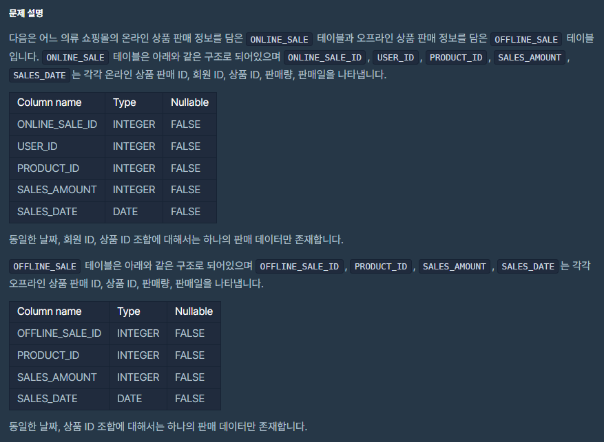 문제 : 오프라인/온라인 판매 데이터 통합하기