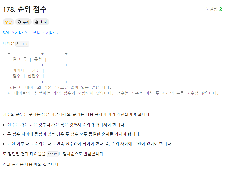 , DENSE_RANK() OVER (ORDER BY Score DESC) AS 'Rank'