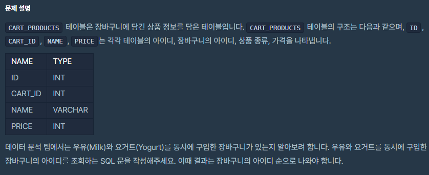 문제 : 우유와 요거트가 담긴 장바구니
