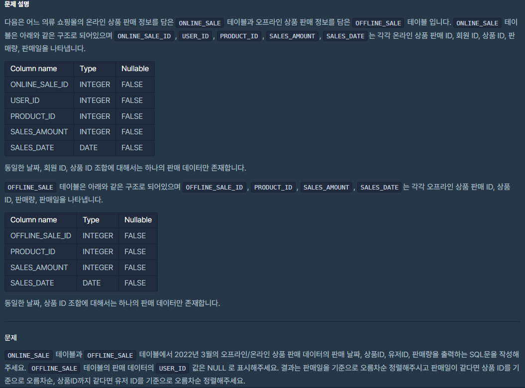 문제 : 오프라인/온라인 판매 데이터 통합하기