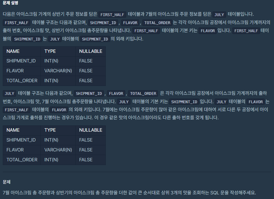 문제 : 주문량이 많은 아이시크림들 조회하기