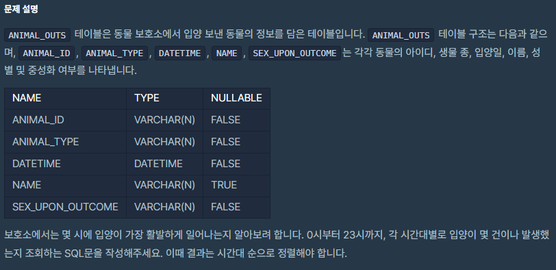 , (SELECT COUNT(*) FROM ANIMAL_OUTS WHERE HOUR(DATETIME) = @HOUR) AS COUNT