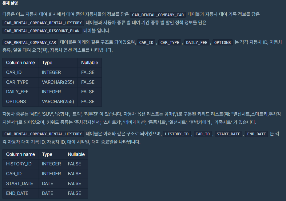문제 : 특정 기간동안 대여 가능한 자동차들의 대여비용 구하기