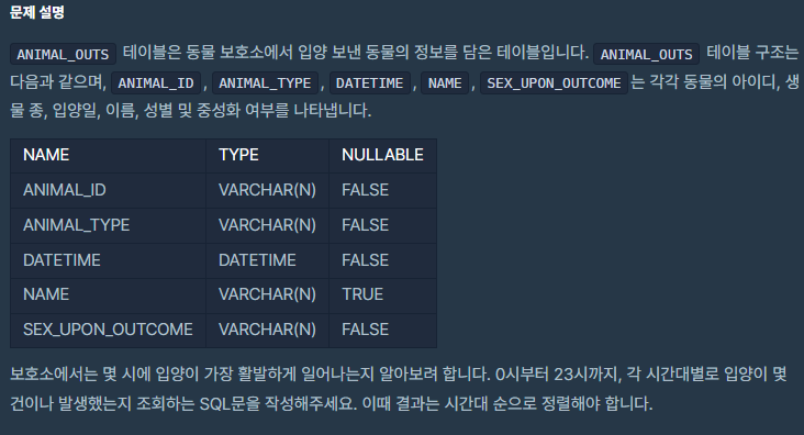 , (SELECT COUNT(*) FROM ANIMAL_OUTS WHERE HOUR(DATETIME) = @HOUR) AS COUNT
