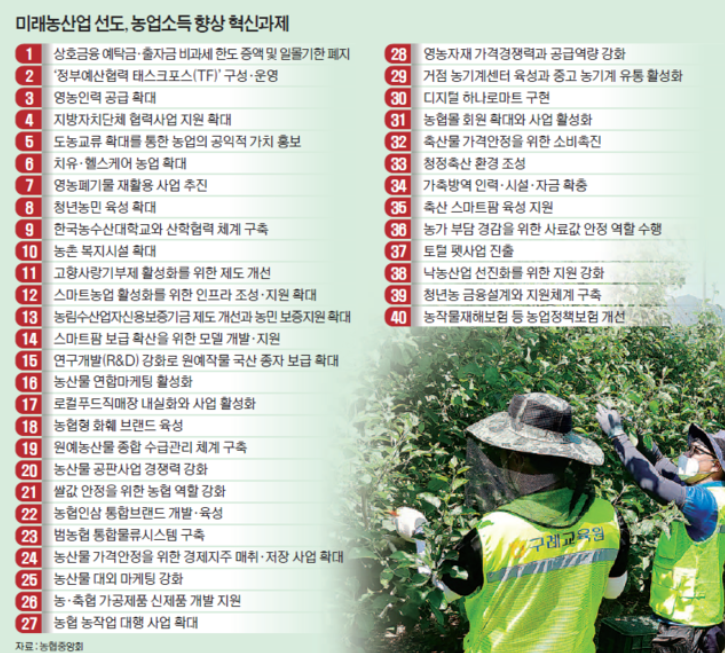 농협이 추진하는 '농사같이 100대 혁신과제'는 농업소득 향상에 대부분 초점을 맞추고 있다.