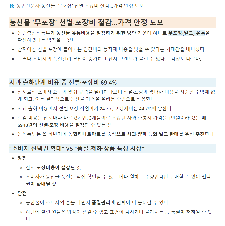 농림축산식품부가 농산물 유통비용을 절감하기 위한 방안 가운데 하나로 무포장(벌크) 유통을 확산하겠다는 방침을 내놨다. 산지에선 선별·포장에 들어가는 인건비와 농자재 비용을 낮출 수