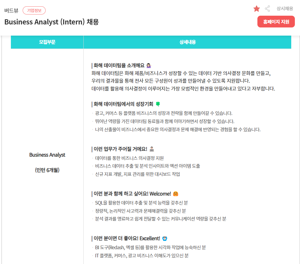 [버드뷰] Business Analyst (Intern) 채용 (~상시채용) | 캐치