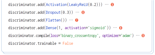 - 주의할 점 : 판별자를만들 때는 가중치를 저장하는 학습 기능을 꺼주어야함