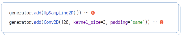 - 패딩 : 이미지 크기를 조절하는 이유는 판별자가 비교할 '진짜'와 똑같은 크기여야 하기 때문임