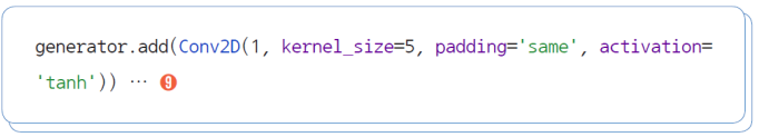 generator.add(Conv2D(1, kernel_size=5, padding='same', activation='tanh'))