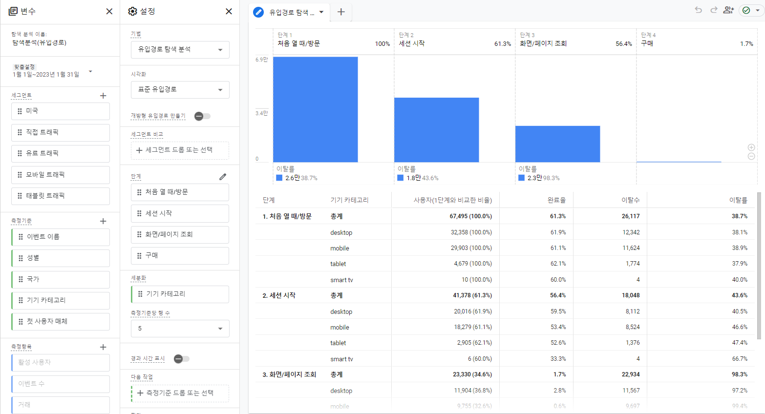 - 퍼널 분석을 할 수있음