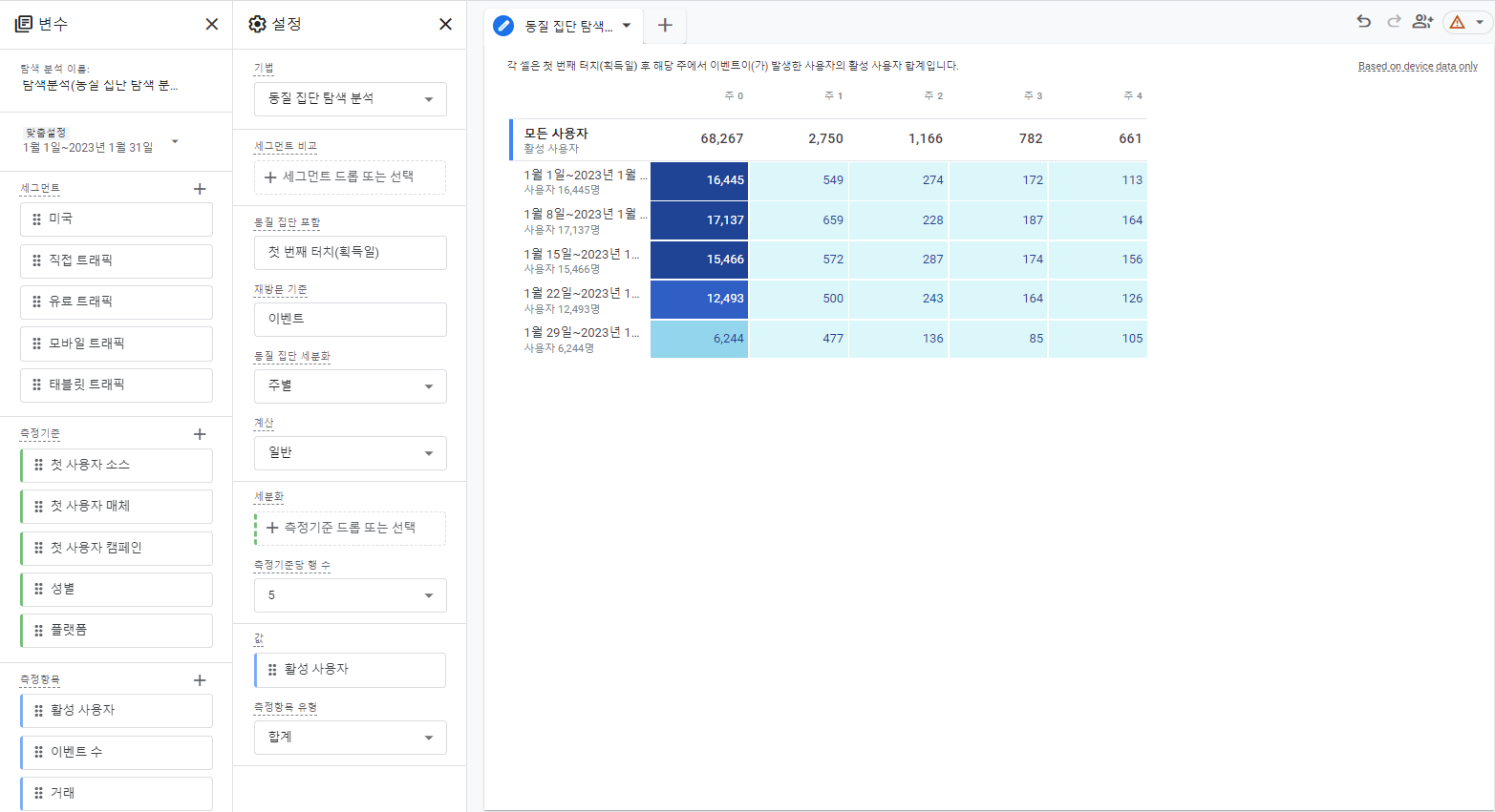 - 코호트 분석을 통해 동질집단별 기간에 따른 변화를 파악할 수 있음