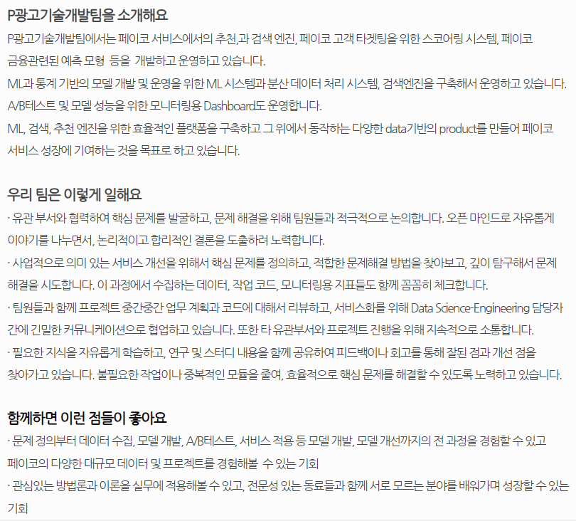 우대사항 : 통계학 / 금융,결제,마케팅 분야의 머신러닝 or 통계모델링 경험 / A/B test /