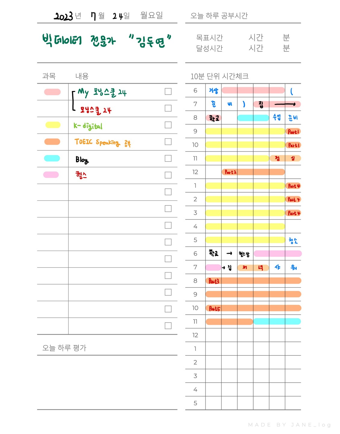 | 운동 / TOEIC Speaking 공부 | 18:00~22:00 | 운동 / TS Part 3 |